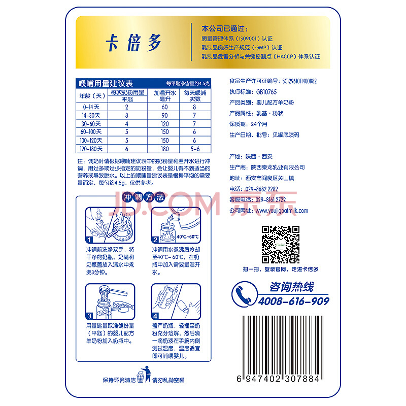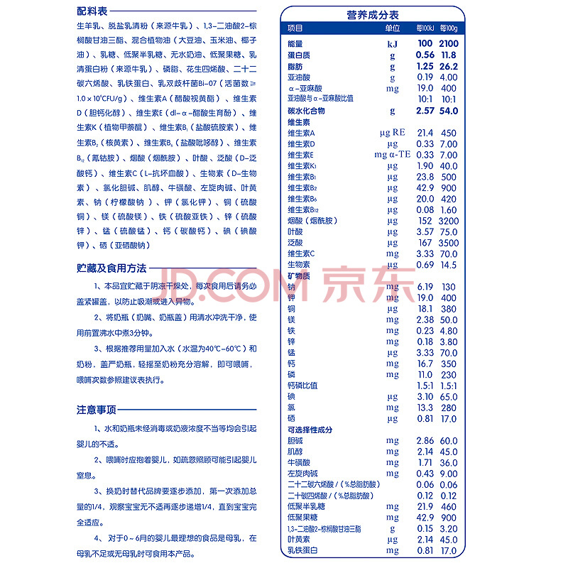 卡倍多嬰兒配方羊奶粉(0-6月齡 1段)800克